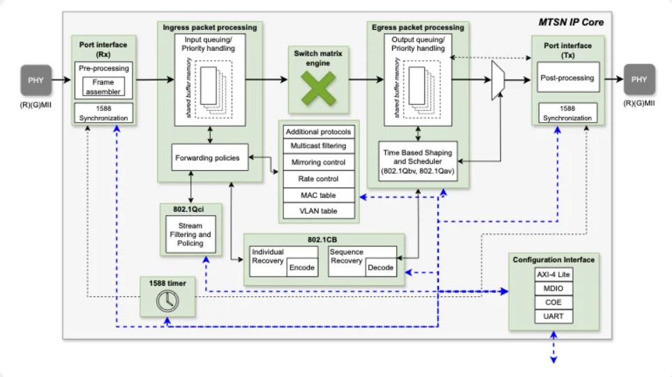 Multiport TSN Switch (MTSN)10M/100M/1G Multiport TSN Ethernet Switch IP Core |